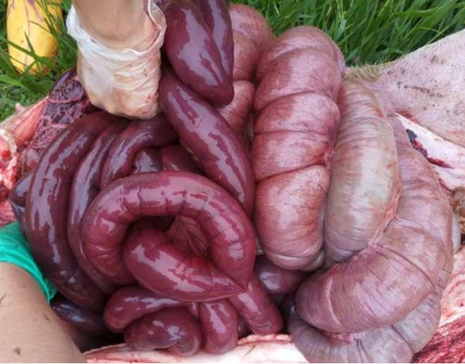 由致病性大肠杆菌引起,可感染不同日龄仔猪,表现症状有所不同。感染3-10日龄内仔猪,称为仔猪黄痢,解剖后肠管松驰膨大,内含多量黄色液体或气泡;小肠黏膜充血,间或出血,肠内容物为淡黄色米汤样。