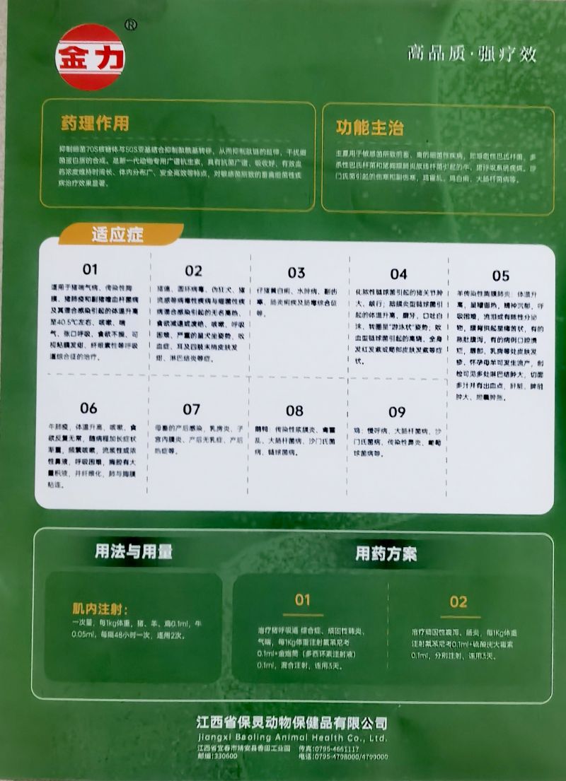作用与用途:酰胺醇类抗生素。用于巴氏杆菌和大肠杆菌感染。