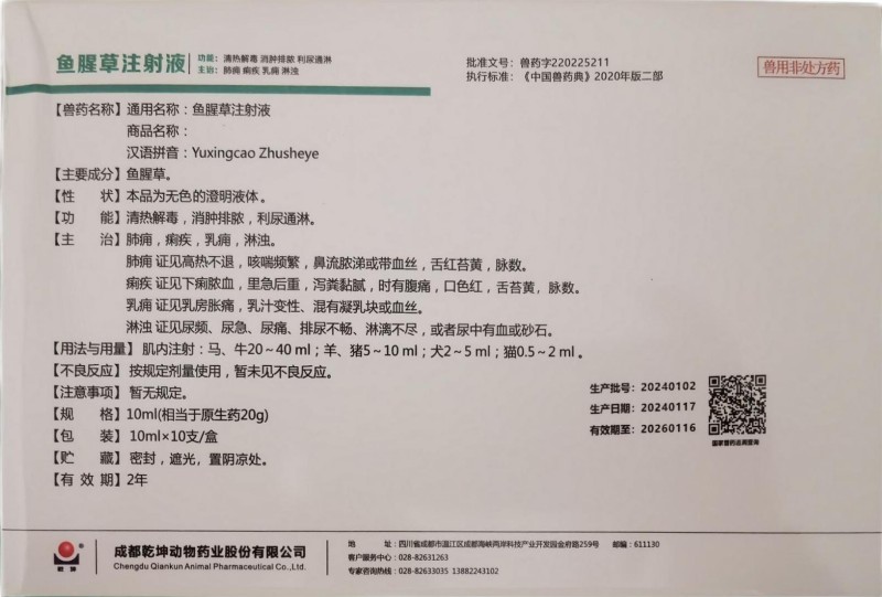 批准文号:兽药字220225211执行标准:《中国兽药典》2020年版二部