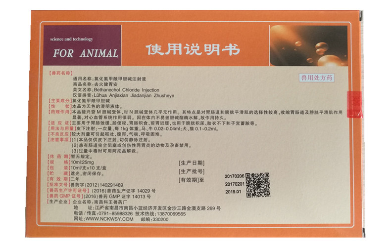 祛火健胃安氯化氨甲酰甲胆碱注射液