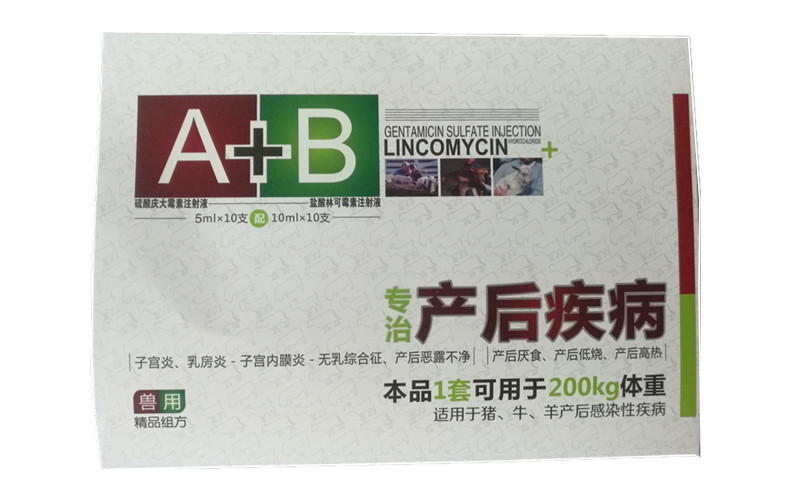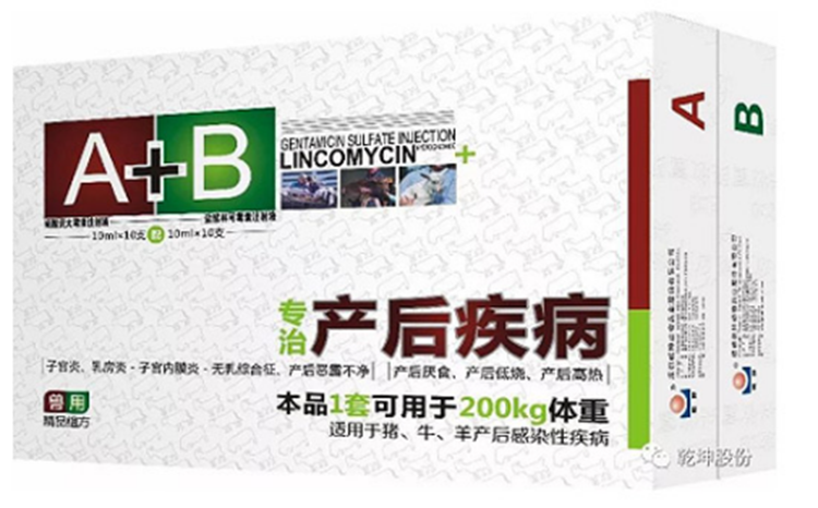 【用法用量】肌内注射:1支A+1支B混合后使用。牛每400Kg体重1套,猪、羊200Kg体重1套,一日一次。