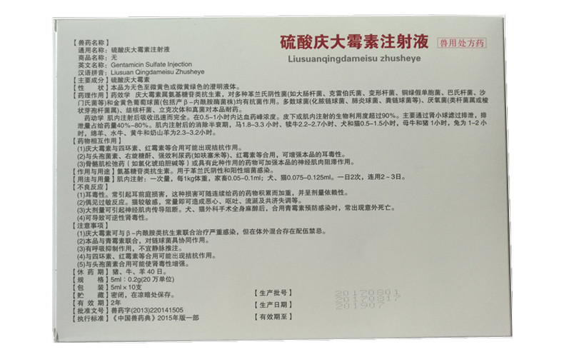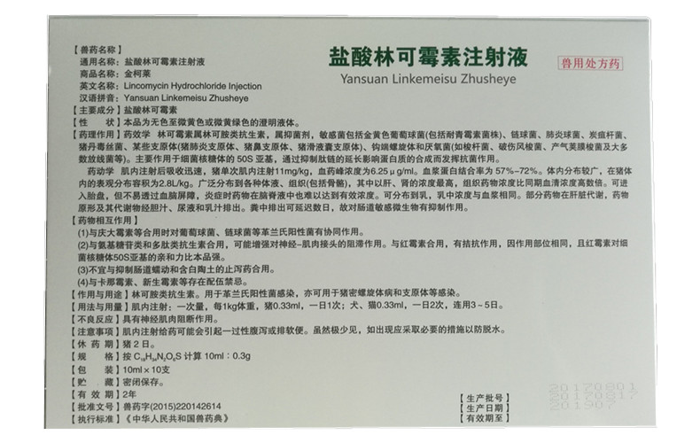 【产品组成】:2%硫酸庆大霉素注射液10ml+10%盐酸林可霉素注射液10ml