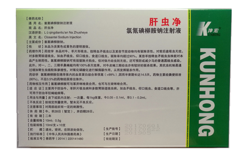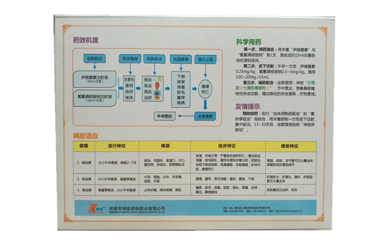 【产品组成】:氯氰碘柳胺钠注射液5ml+伊维菌素注射液10ml