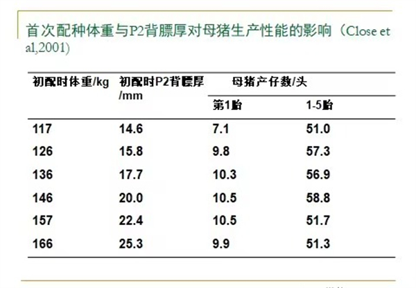 关于背膘不足对初产母猪以及终身产仔数的影响,国外研究机构早就进行了相关的试验和统计;下表是国外机构的研究数据: