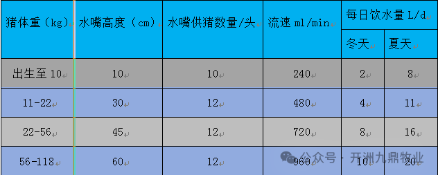 3.饮水量标准;未补料仔猪:每日190毫升/公斤体重,教槽期仔猪:根据采食量增加饮水。