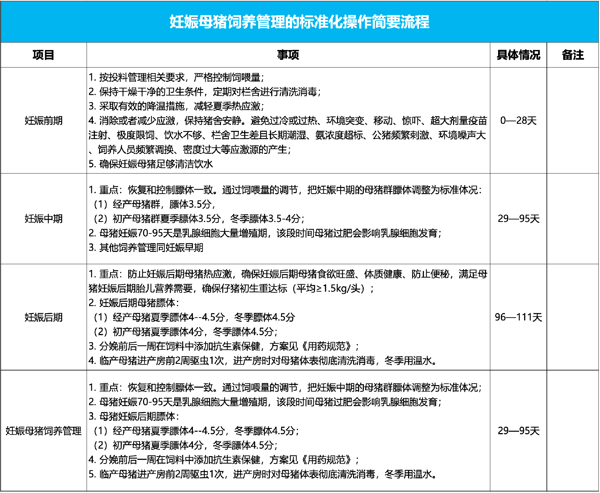 妊娠母猪饲养管理标准操作流程 (SOP)