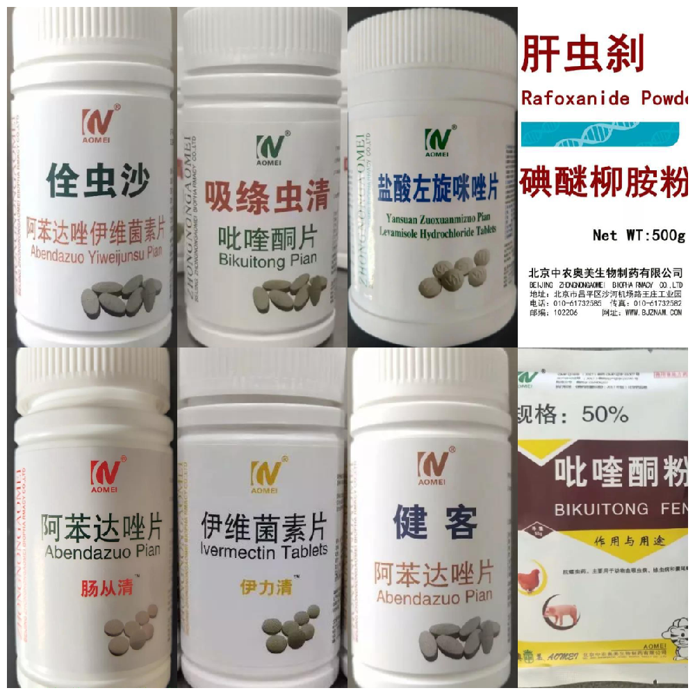 通常驱虫主要针对体内线虫、吸虫、绦虫和体外昆虫,因此常规驱虫应用倍威(6%阿苯达唑0.25%伊维菌素预混剂)12000kg体重拌料1000g或伊力佳(10%阿苯达唑0.2%伊维菌素预混剂)15000kg体重拌料1000g.或用全虫杀片(阿苯达唑伊维菌素片,每10kg体重0.3片)比较方便.阿苯达唑有致畸作用,孕畜怀孕早期慎用。