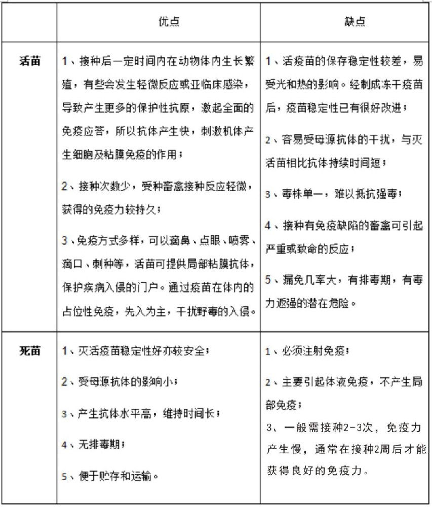 弱毒苗是目前使用最广泛的疫苗,虽然弱毒苗的毒力已经致弱,但仍然保持着原有的抗原性,并能在体内繁殖,可用较少的免疫剂量诱导产生坚实的免疫力,而且不需要佐剂,免疫期长,不影响动物产品的品质,但其保存期短,将其制成冻干苗可延长保存期。