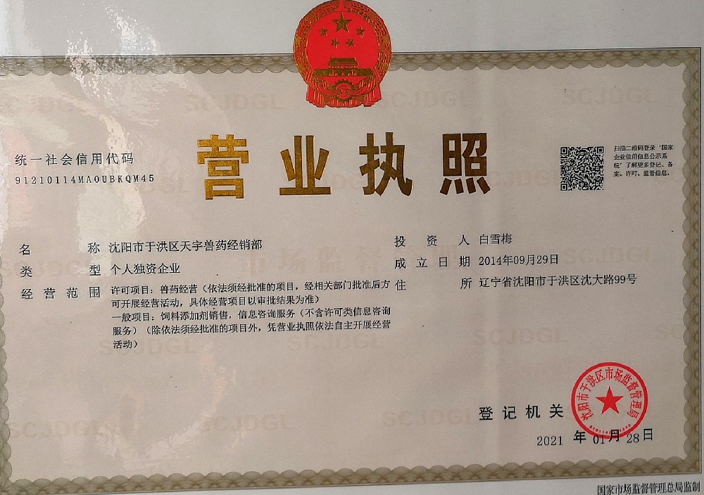 沈阳兽药批发市场沈阳市于洪区天宇兽药经销部执业兽医师考试