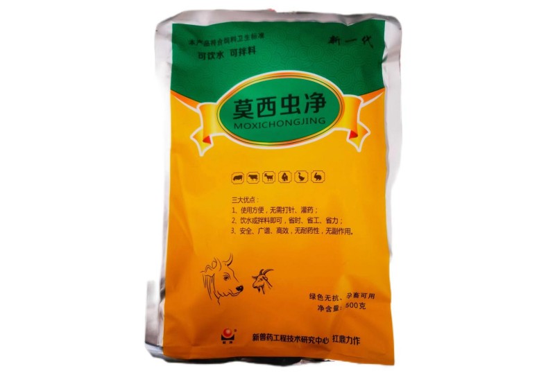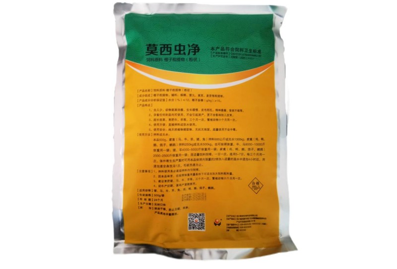 【注意事项】1、拌料使用务必逐级拌料均匀饲喂。2、因本品味苦、在按照体重用量条件下可适当加大饲料配料量。3、建议育肥猪、马、牛、羊等,三个月一次,繁殖动物六个月用一次。4、奶牛产奶期、蛋鸡产蛋期禁用。