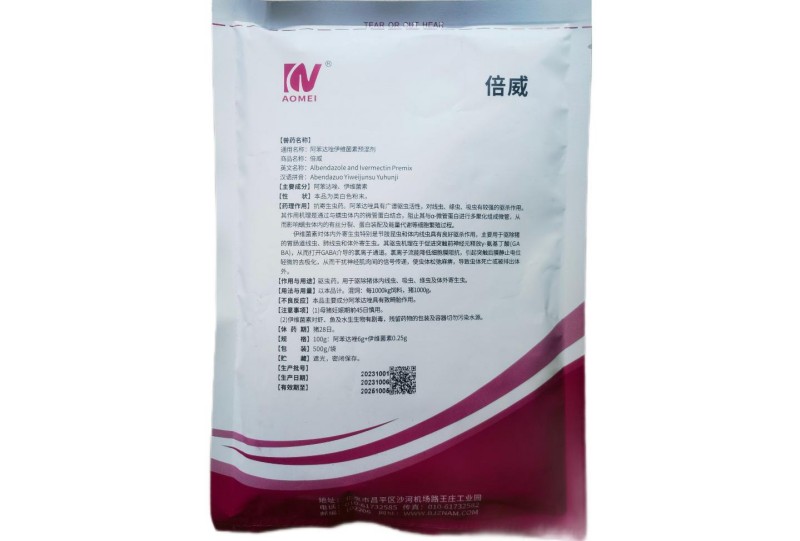 倍威阿苯达唑伊维菌素预混剂 规格:100g:阿苯达唑6g+伊维菌素0.25g