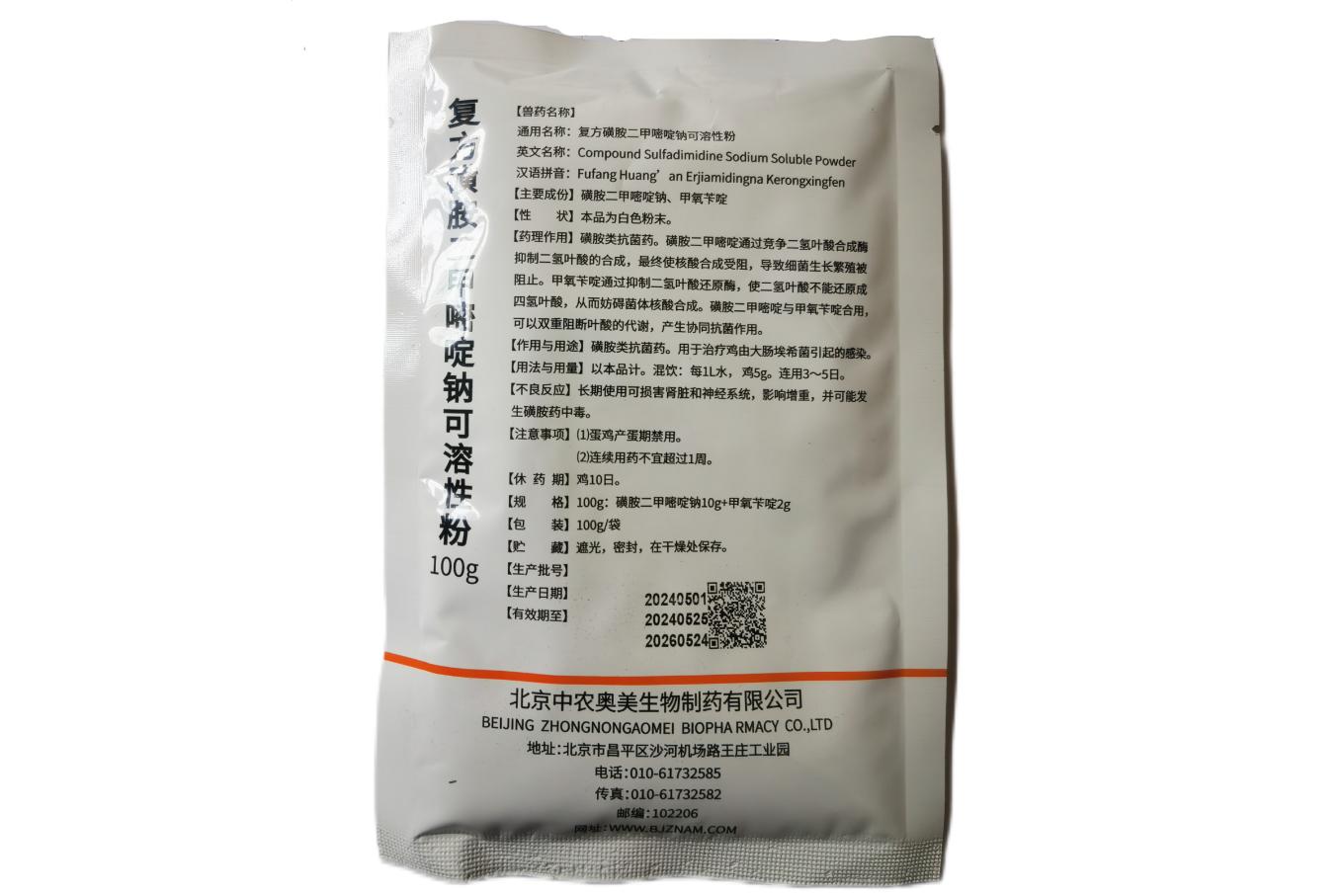 规格:100g:磺胺二甲嘧啶钠10g+甲氧苄啶2g