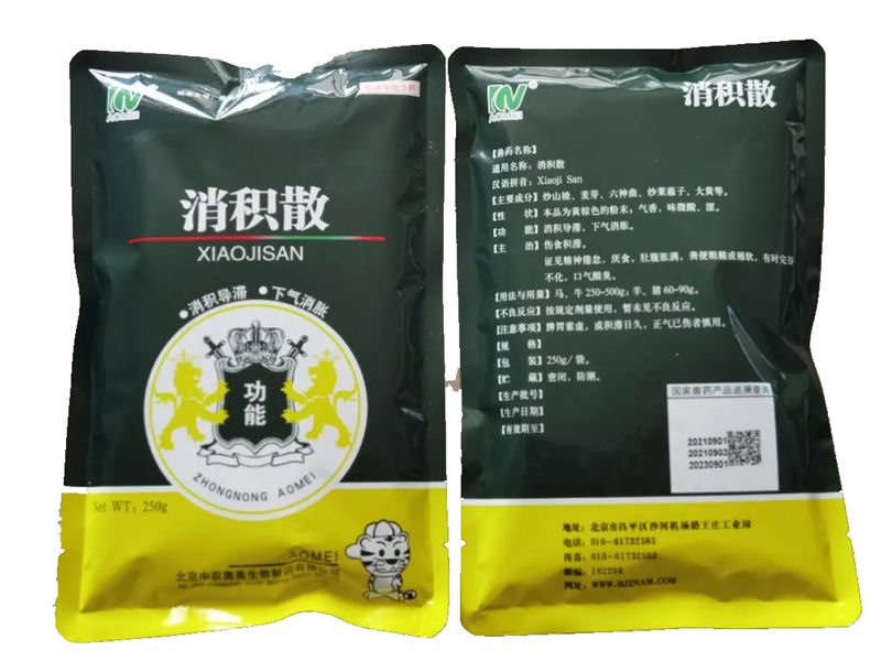 【主要成份】炒山楂、麦芽、六神曲、炒莱菔子、大黄等。【功能】消积导滞,下气消胀。【主治】伤食积滞。证见精神倦怠,厌食,肚腹胀满,粪便粗糙或稀软,有时完谷不化,口···